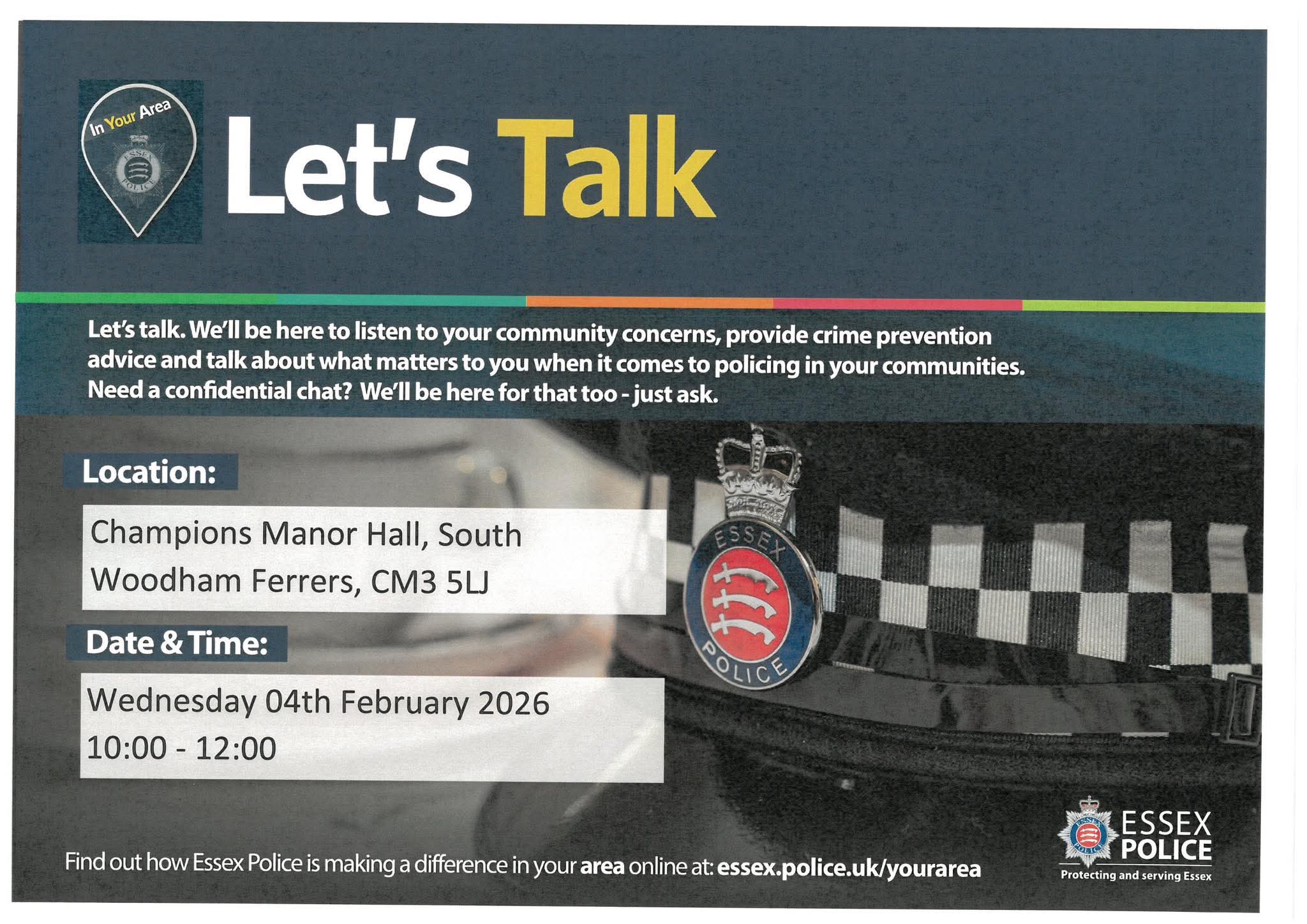 We work closely with local groups and appoint representatives to attend meetings such as ECC Transport, Chelmsford Association of Local Councils, Playing Field and Village Hall committees, the Tree Warden Scheme, Marsh Farm Forum, Health and Social Care Group and others.
