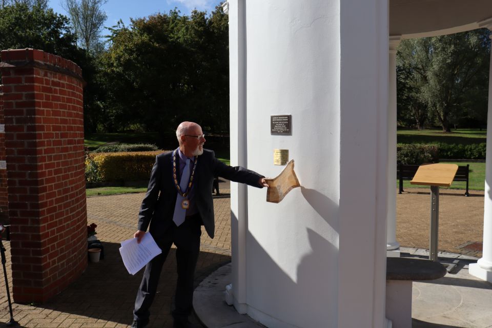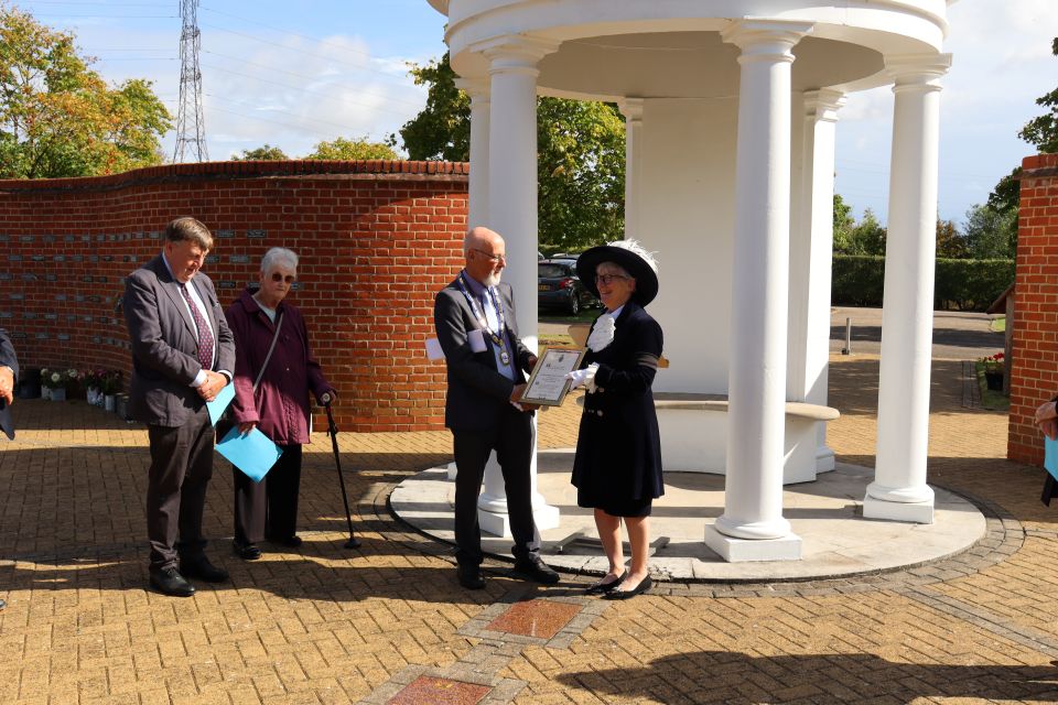 To commemorate the occasion, Cllr Shearring unveiled a new plaque celebrating three decades of remembrance and reflection. The Town Council was honoured with a community service award presented by the High Sheriff of Essex, recognising its ongoing dedication to local wellbeing.