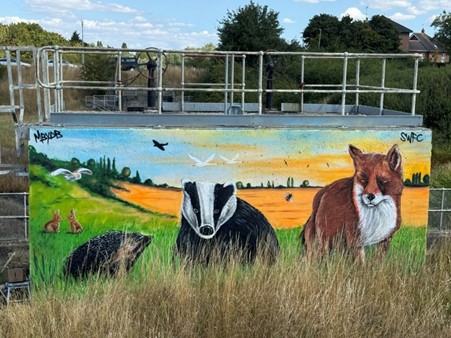 The project was made possible with the kind cooperation of the Environment Agency, who granted permission for the mural to be painted on their property. Their support has helped turn a site once marred by vandalism into a visual celebration of the Fens natural beauty.